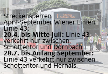 Von 20. April bis September ist die Anfahrt mit der Linie 43 nur eingeschränkt möglich. >> Alle Infos